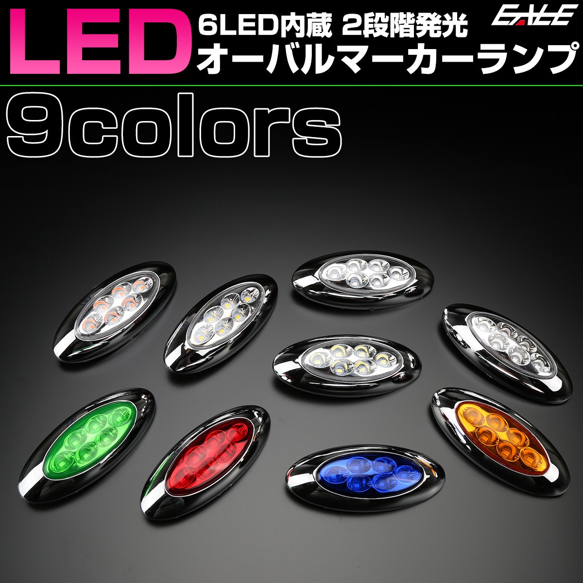 6LED内蔵のメッキカバー付きオーバルマーカー。