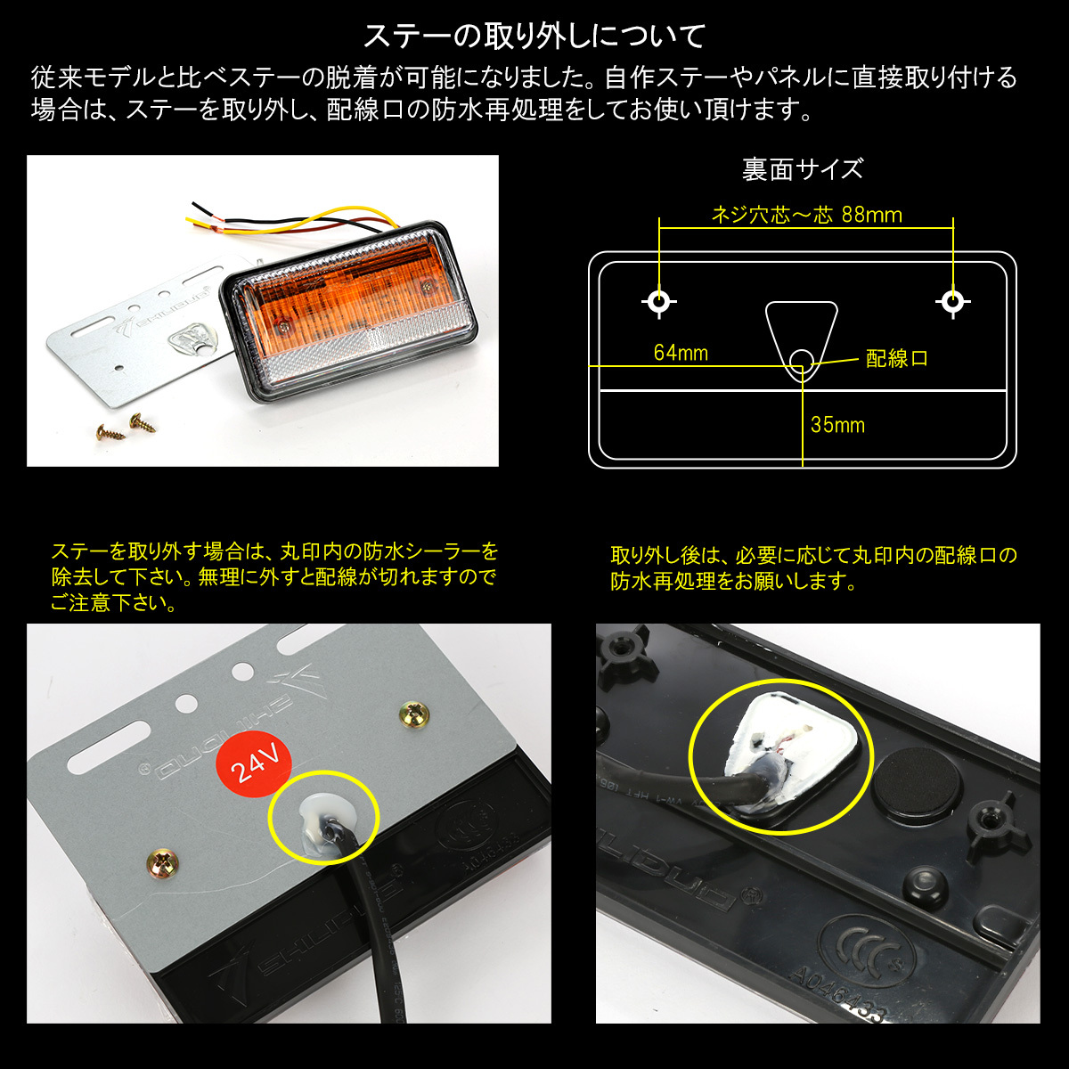 LED サイドマーカー ダウンライト付き ステー脱着式 高輝度アンダーライト 薄型 路肩灯 24V トラック バス F-412-421