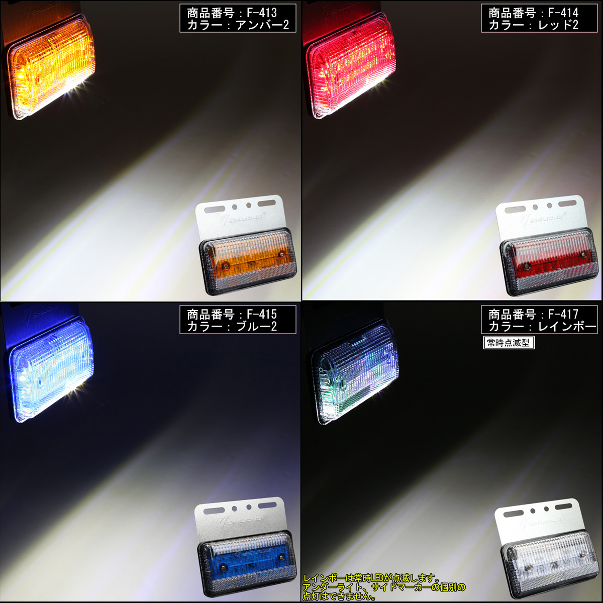 レインボーモデルは常時LEDが点滅を繰り返す特殊モデルです。また、サイドマーカーとダウンライトの回路は独立しておらず、同時に点灯します。