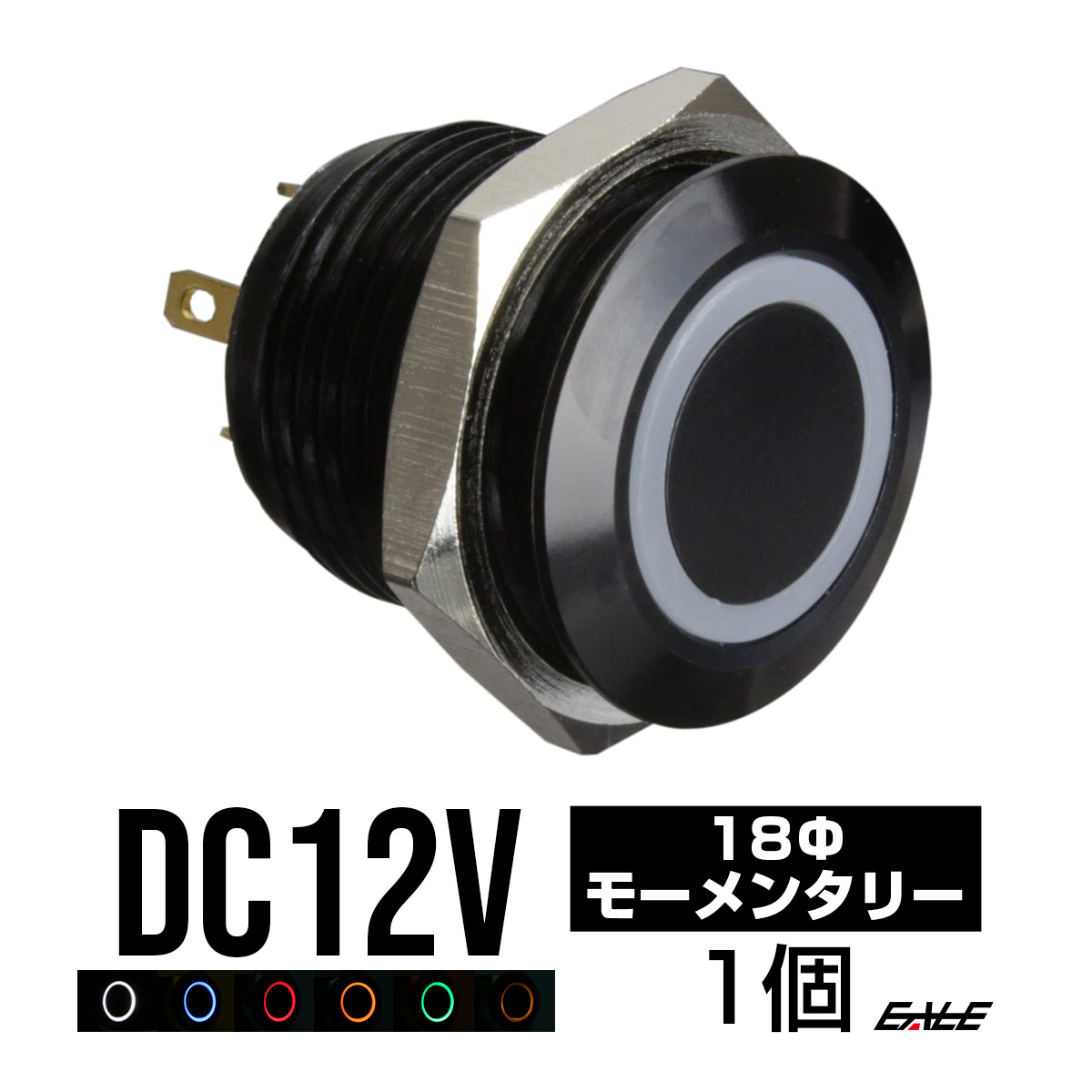 LEDリング付き ブラックボディ 薄型 プッシュスイッチ モーメンタリ―式 防水型 12V I-162