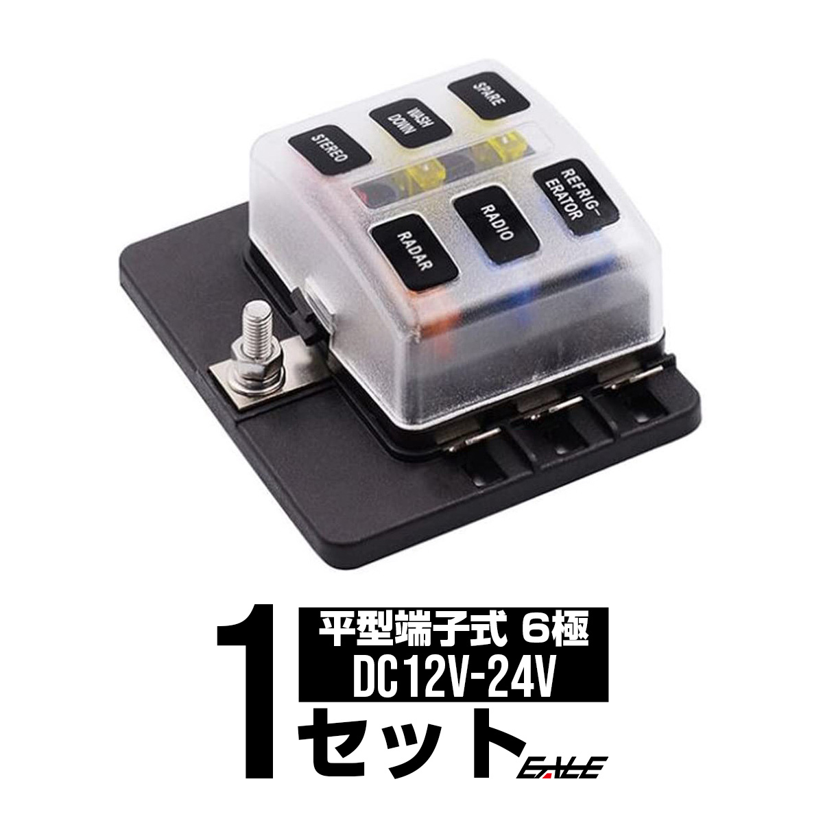 ヒューズボックス 汎用 6極 平型端子式 12V 24V兼用 MAX100A 平型ブレード インジケーターランプ付 I-506