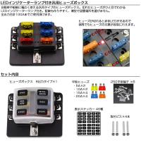 ※自動車や船舶に幅広く使える汎用タイプのヒューズボックス。 切れたヒューズがひと目でわかるLEDインジケーターランプ付き。 配線も作りやすく、薄型で設置場所を選びません。 1出力最大30A、全出力合計100Aまでご使用頂けます。