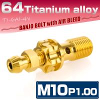 バンジョーボルトM10 P1.0 チタン エアブリード付 シングル ブレーキライン ゴールド JA1304