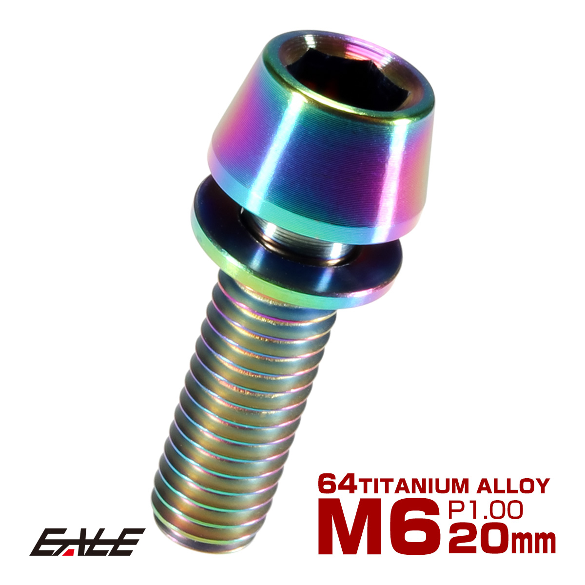 チタンボルト M6×20mm P1.00 ワッシャー組込 テーパーヘッド キャップボルト 平座金付き 六角穴付ボルト レインボー 虹色 JA157