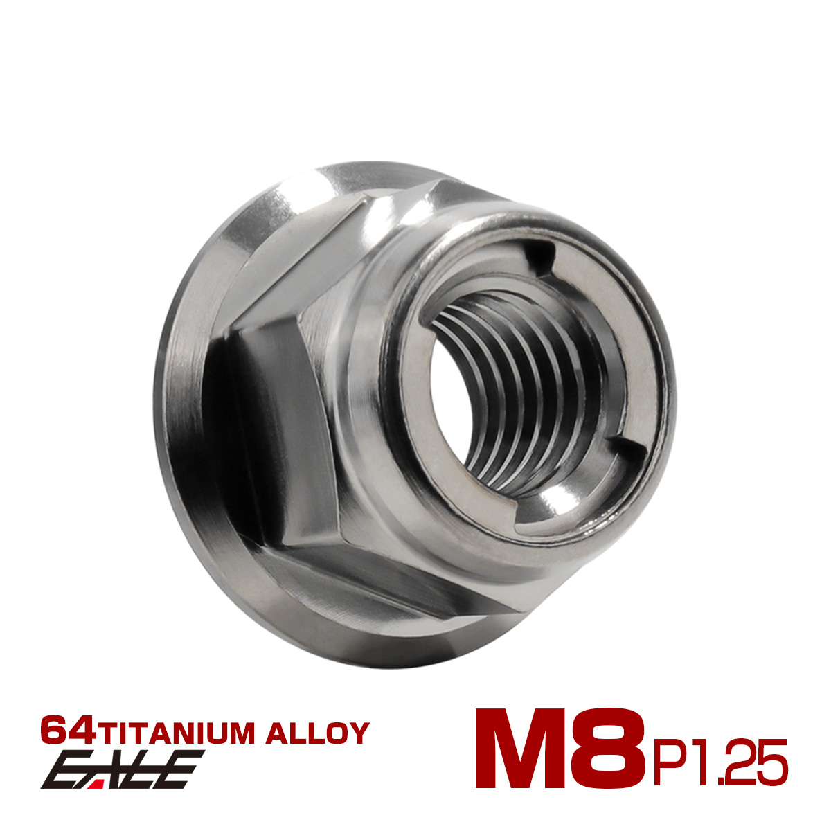チタンナット M8 P1.25 フリクションリングナット フランジ付き 六角ナット ゆるみ止めナット シルバー JA1645