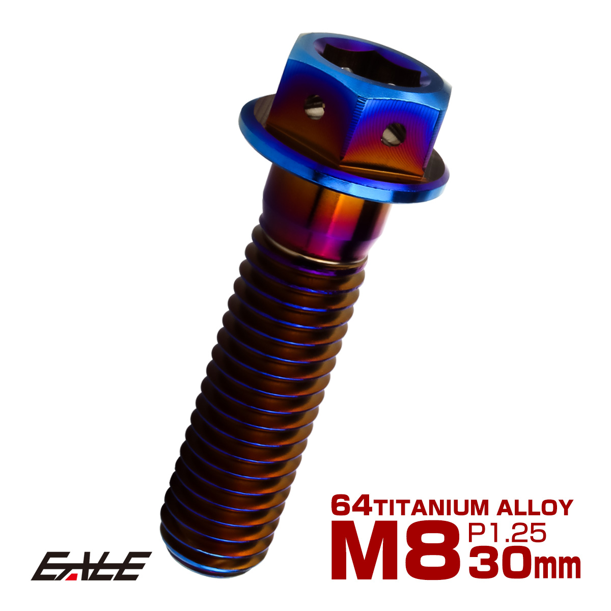 チタンボルト M8×30mm P1.25 六角ボルト 六角穴付き ホールヘッド フランジボルト 焼きチタンカラー JA1785