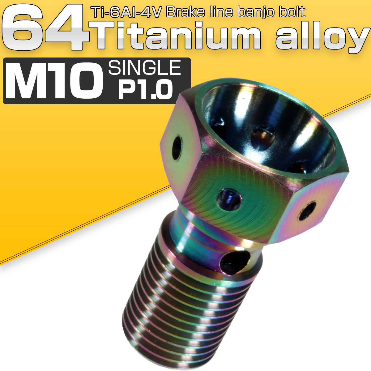 バンジョーボルト M10 P1.25 チタン シングル 1本ホース用 ホンダ ヤマハ カワサキ 虹色 焼きチタン風 JA212