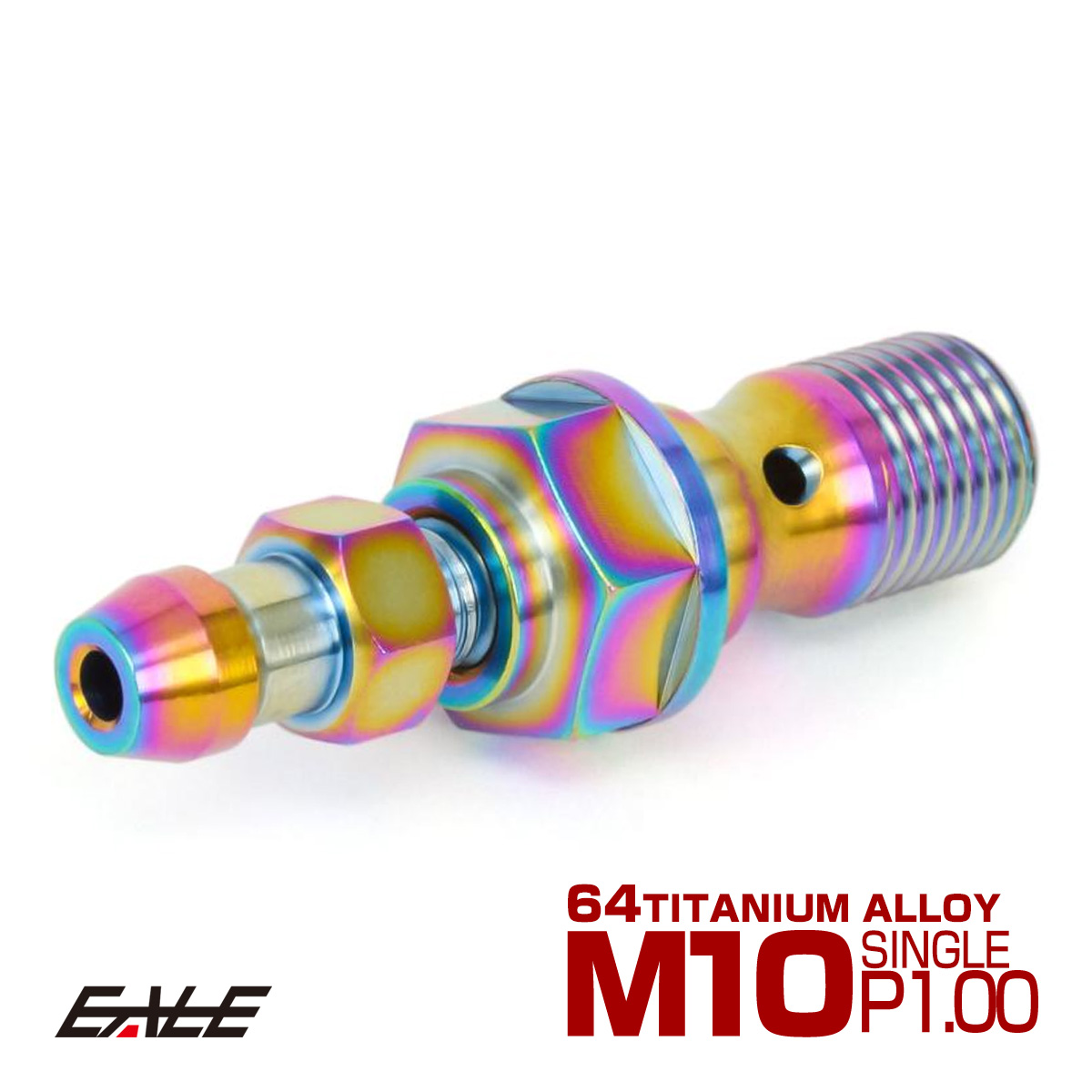軽量で耐食性・耐熱性に優れた64チタン合金を削り出し製造された、ブレンボや一部のスズキ車などに使われる、ピッチ1.00のバンジョーボルト(シングル)にエアブリード(ニップル)を付けたバンジョーボルトです。