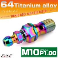 チタン M10 P1.00 バンジョーボルト エアブリーダー ニップル付 ブレーキライン シングル レインボー JA2585