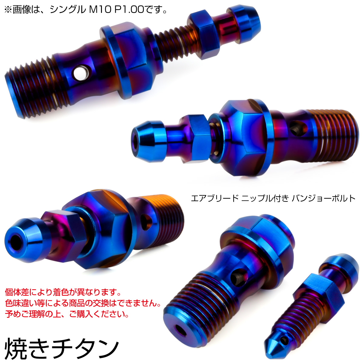 チタン M10 P1.25 バンジョーボルト エアブリーダー ニップル付 ブレーキライン シングル 焼きチタン JA2592