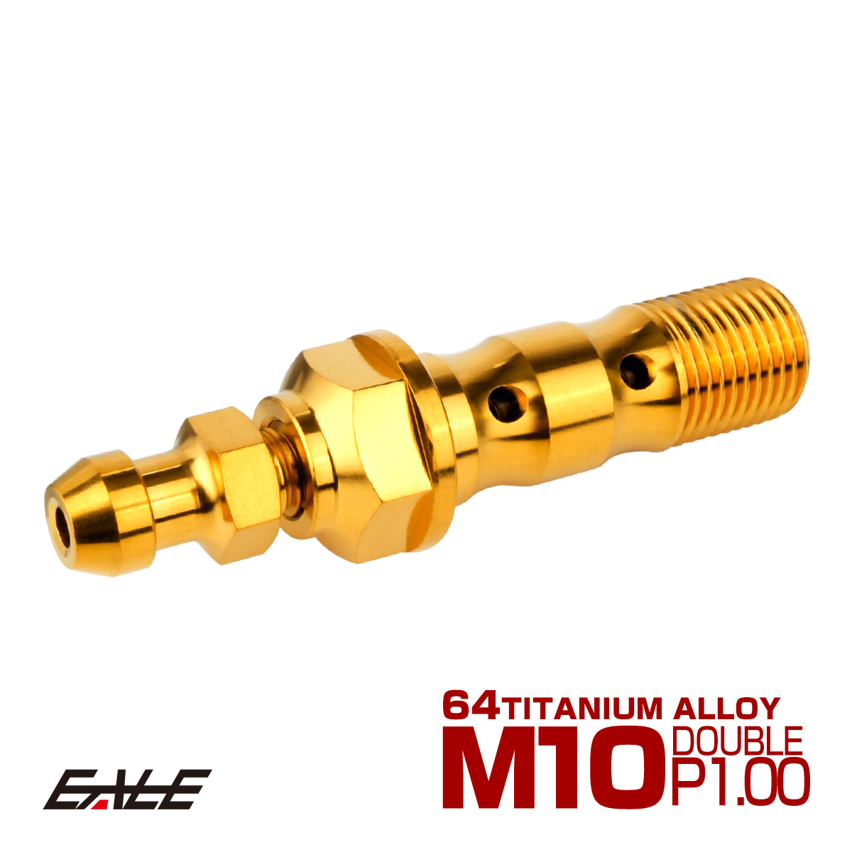 チタン M10 P1.00 バンジョーボルト エアブリーダー ニップル付 ブレーキライン ダブル ゴールド JA2596