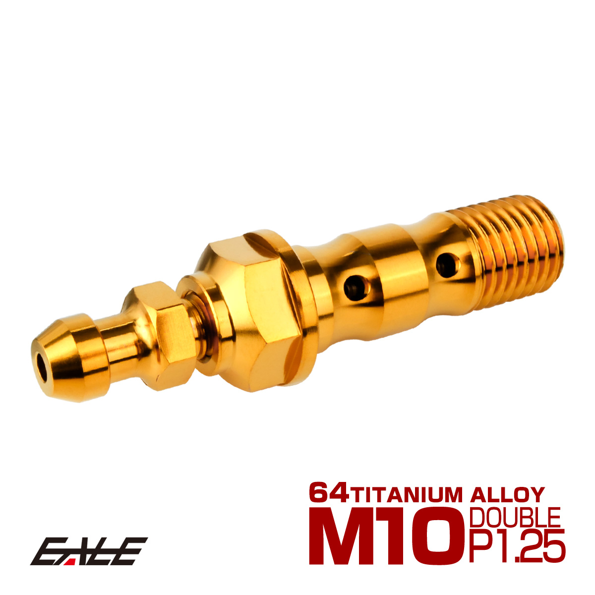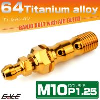 チタン M10 P1.25 バンジョーボルト エアブリーダー ニップル付 ブレーキライン ダブル ゴールド JA2601