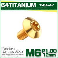 チタンボルト M6 12mm P1.0 ボタンボルト トルクス穴付き デザインボルト ゴールド JA627