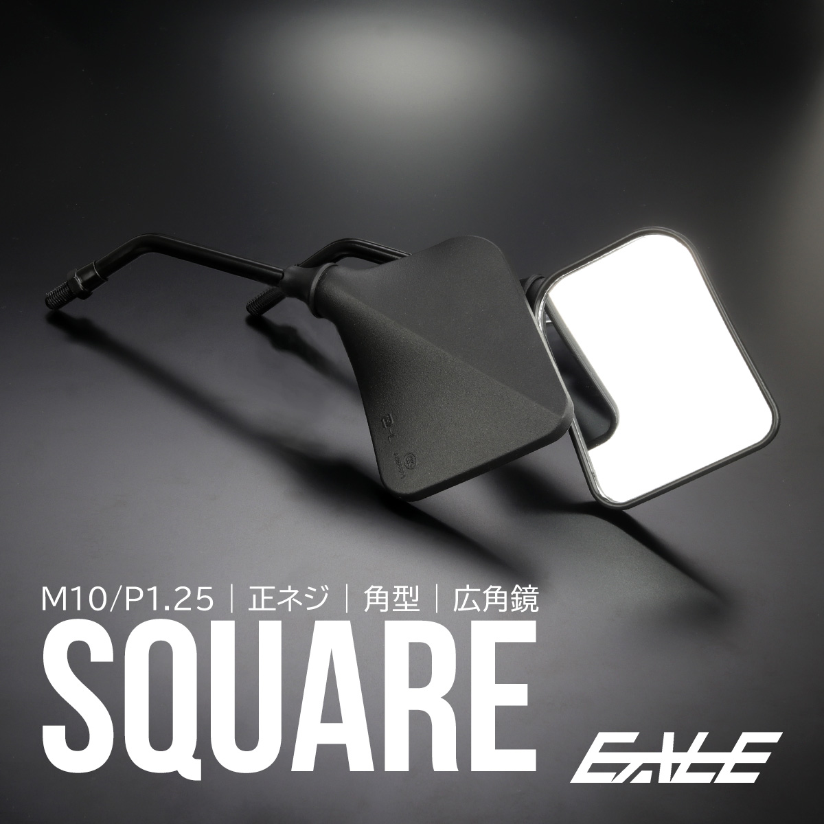 バイクミラー スクエア M10 正ネジ 広角鏡 薄型 角形 マットブラック 左右セット S-1155