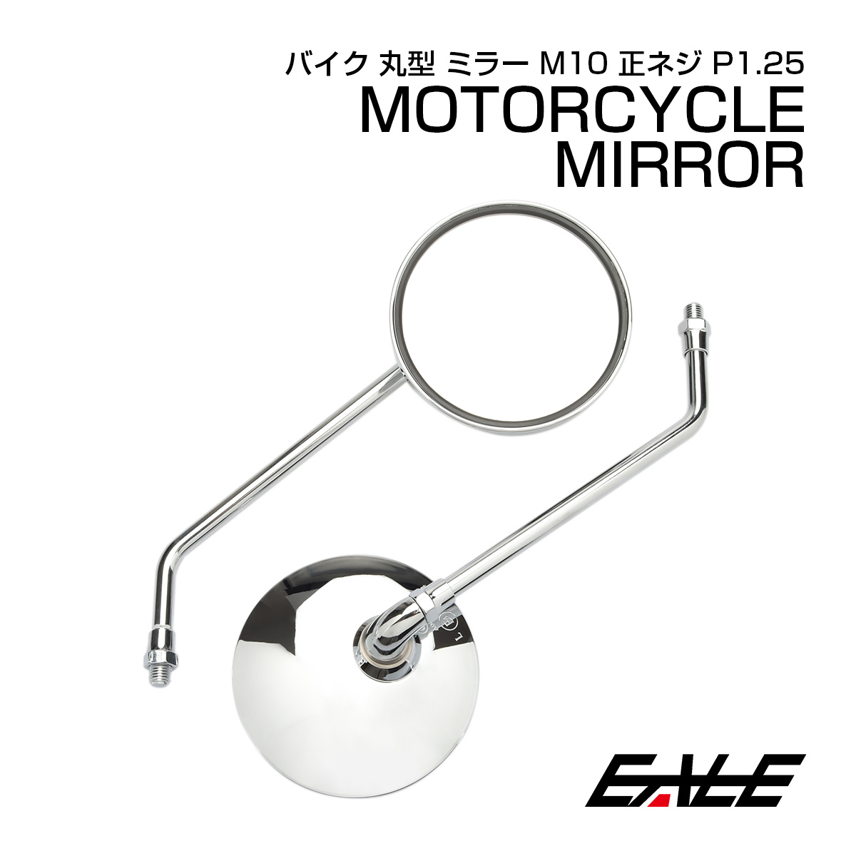 バイク ミラー 丸型 ラウンド クロムメッキ 左右セット 10mm M10 正ネジ カスタム 汎用 S-264