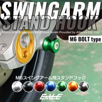 アルミ製でカラーアルマイト処理を施した6mmボルトタイプのスイングアーム用スタンドフック。