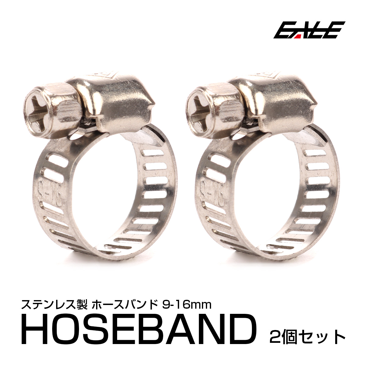 ホースバンド ステンレス製 9-16mm 幅8mm 汎用 2個セット S-360