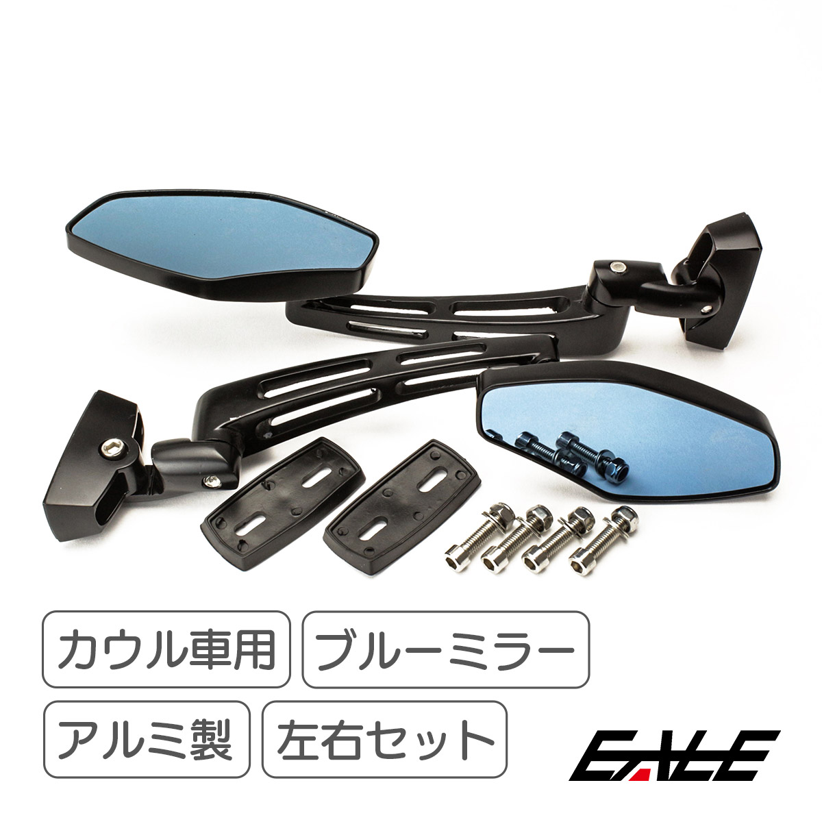 ブルーミラー カウリングミラー ポリゴン アルミ カウルミラー 凸面鏡 左右セット ブラック カウル付きバイク用 S-507