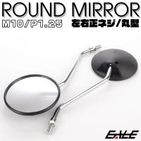 バイクミラー ラウンドタイプ 左右セット M10 正ネジ P1.25 凸面鏡 丸型 ブラック シルバー S-532