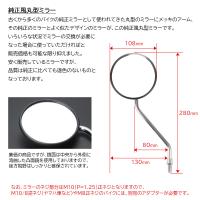 多くのバイクの純正ミラーとして使われてきた丸型のミラーにメッキのアーム。