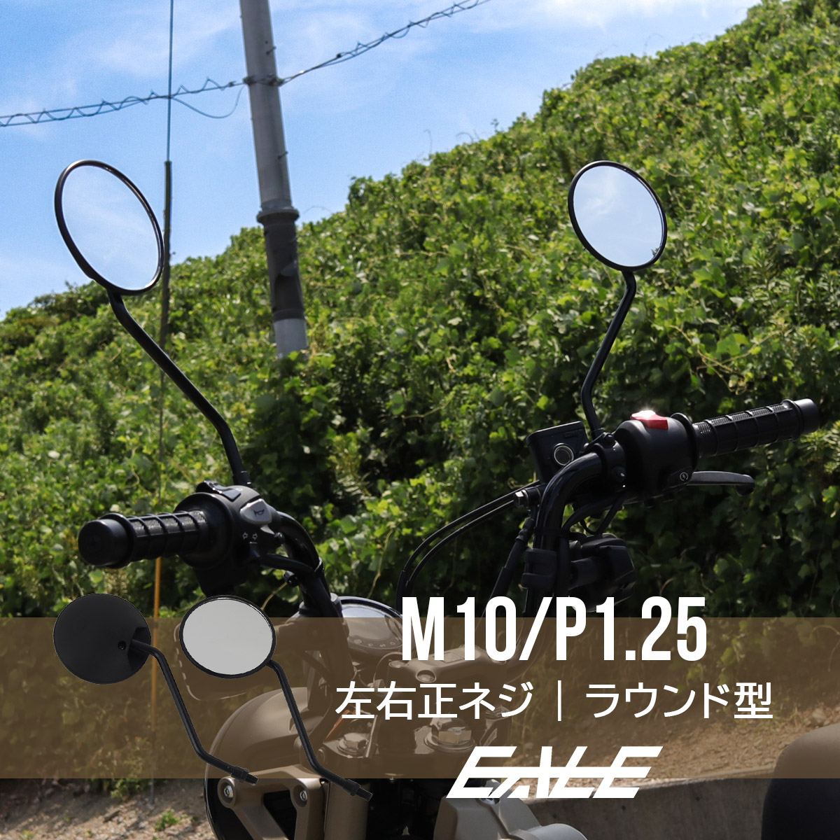 ラウンドミラー M10 正ネジ P1.25 丸型 凸面鏡 角度調整 ブラック バイクミラー 左右セット S-532-BK