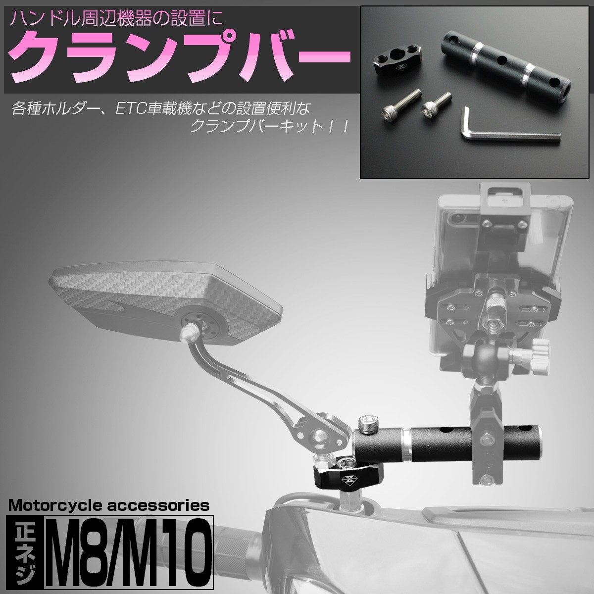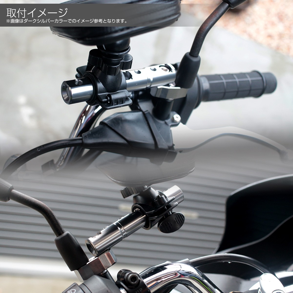 ミラーホルダーを利用した汎用タイプのクランプバーキット。