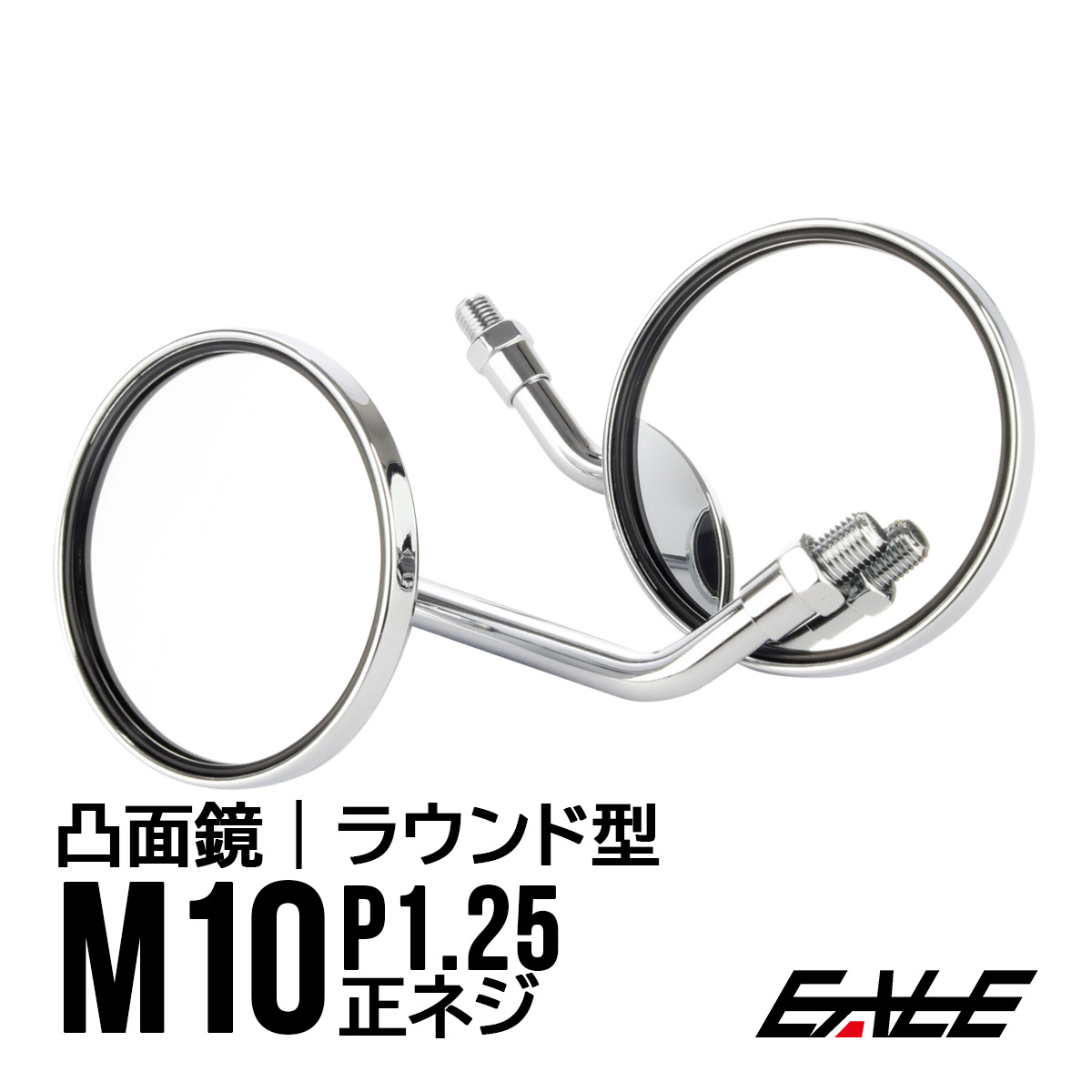 バイク ミラー 丸型 メッキ M10正ネジ 広角 凸面鏡 左右セット