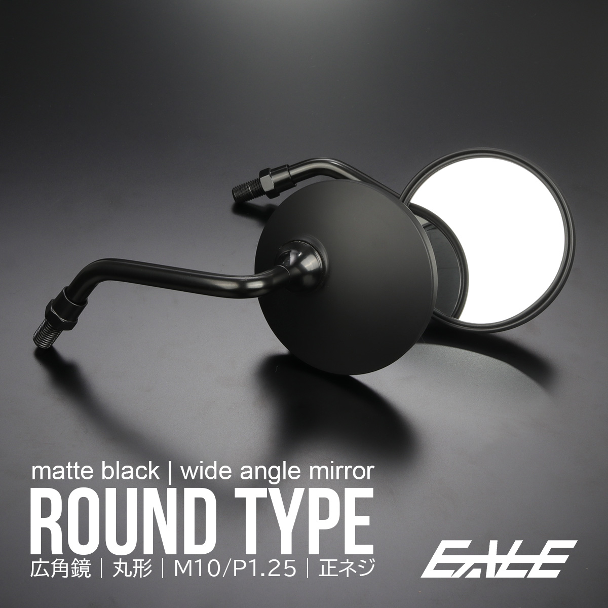 バイク ミラー 丸型 ラウンド型 M10正ネジ 艶消しブラック バイク用 左右セット S-917-BK