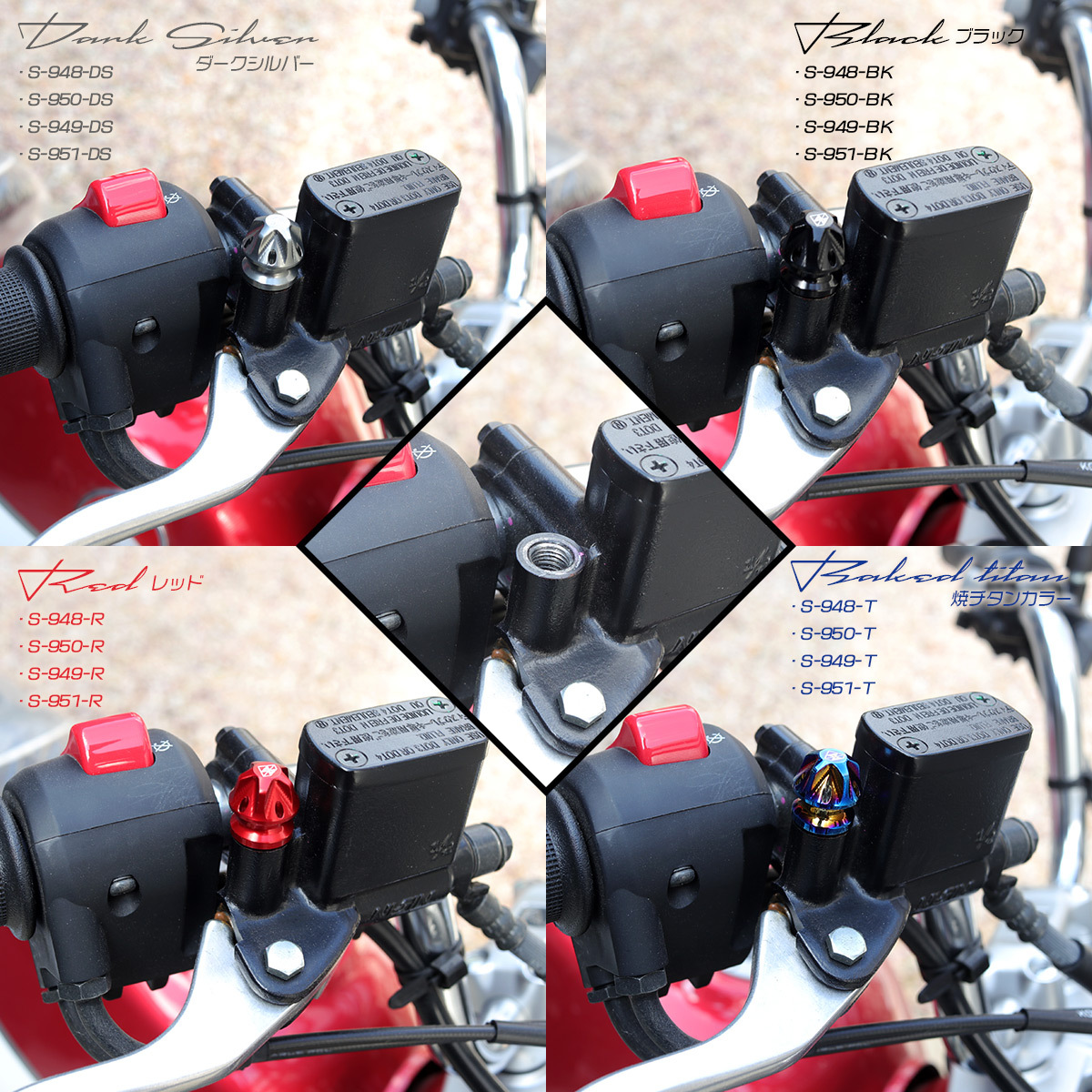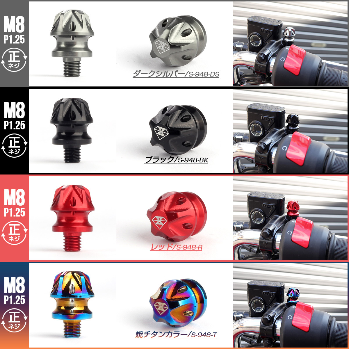 ミラーホールカバー ミラーホールキャップ M8 M10 P1.25 正ネジ 逆ネジ T6アルミ 4色 S-948-951