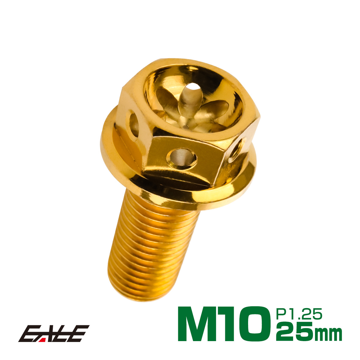 M10×25mm フラワー ヘッド ボルト ステンレス 削り出し フランジ付六角ボルト フレームやエンジン周りに ゴールド TB0523