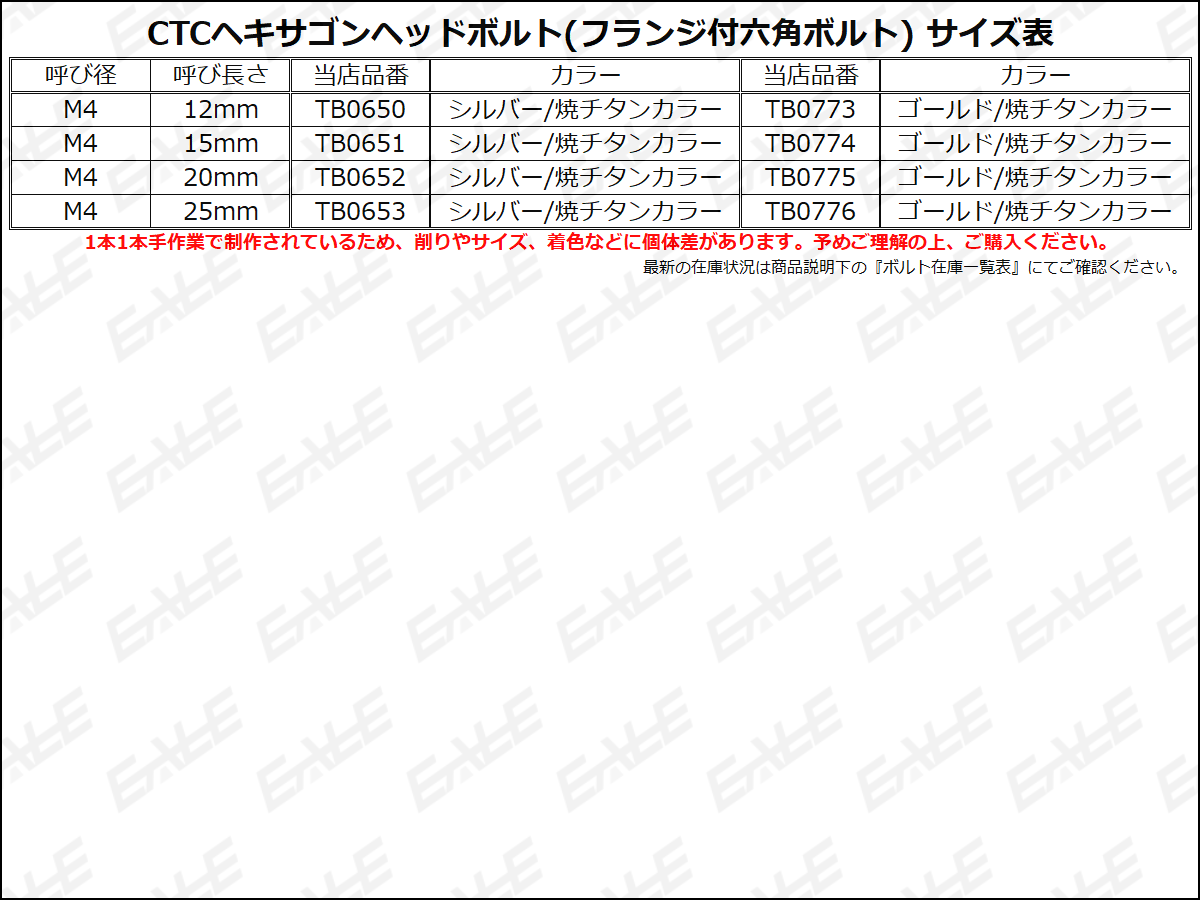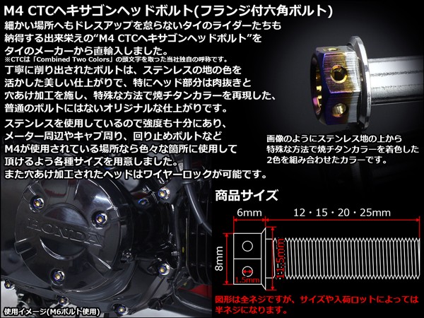 ヘキサゴンヘッドボルト CTC フランジ付六角ボルト M4×15mm ステンレス シルバー&焼チタンカラー TB0651