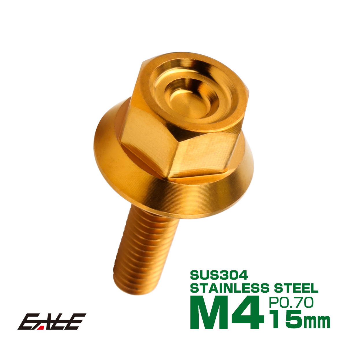 M4×15mm P0.7 フランジ付き 六角ボルト ヘキサゴンヘッド CNC SUS304 ステンレス ゴールド TB1219