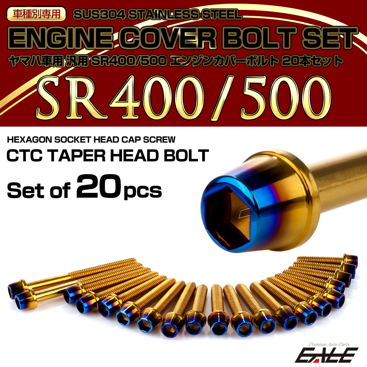 エンジンカバー ボルトセット SR400 SR500 20本セット テーパーヘッド ヤマハ用 ゴールド&ブルー TB7108