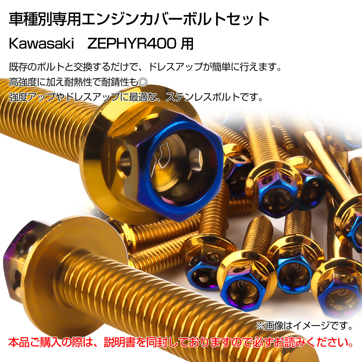 ゼファー400 エンジンカバーボルト 19本セット カワサキ車用 ZEPHYR400 CTC ヘキサゴンヘッド ゴールド&焼きチタンカラー TB8129