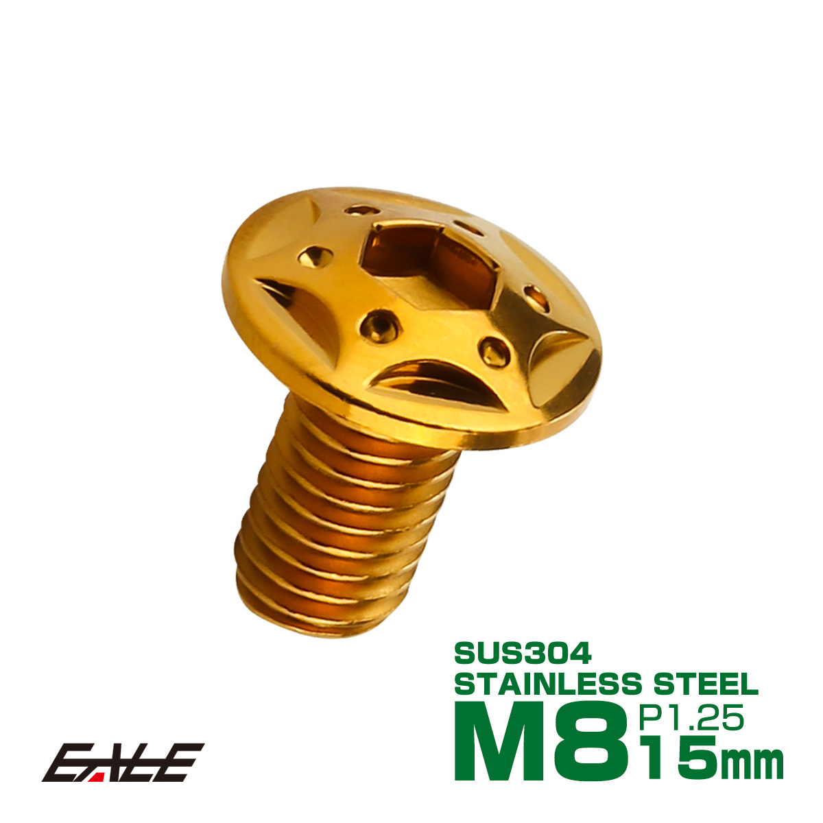 SUSステンレス製 M8×15mm P1.25 ブレーキ ディスク ローター ボルト スターホールヘッド ヤマハ車用 ゴールド TD0105