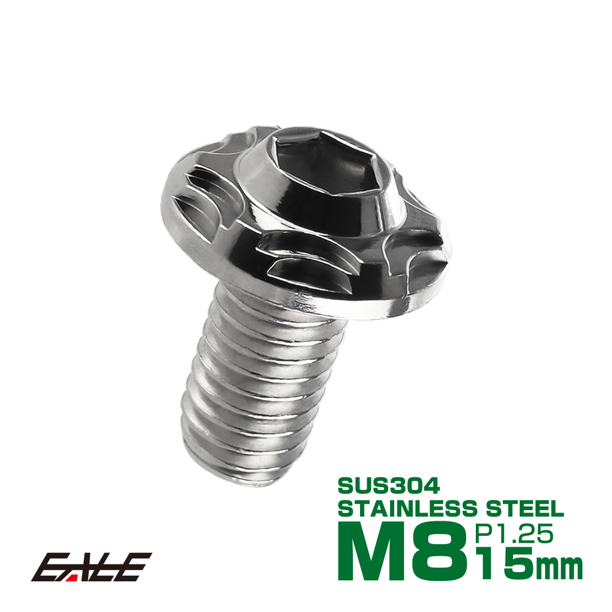 SUSステンレス製 M8×15mm P1.25 ブレーキ ディスク ローター ボルト スノーヘッド ヤマハ車用 シルバー TD0115