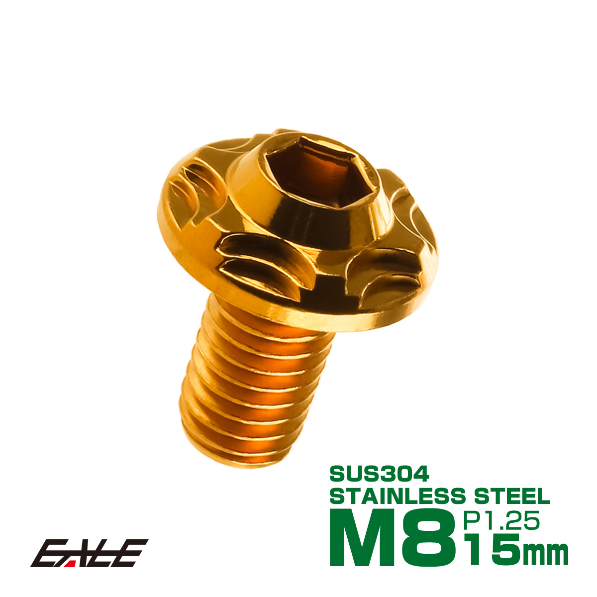 SUSステンレス製 M8×15mm P1.25 ブレーキ ディスク ローター ボルト スノーヘッド ヤマハ車用 ゴールド TD0117