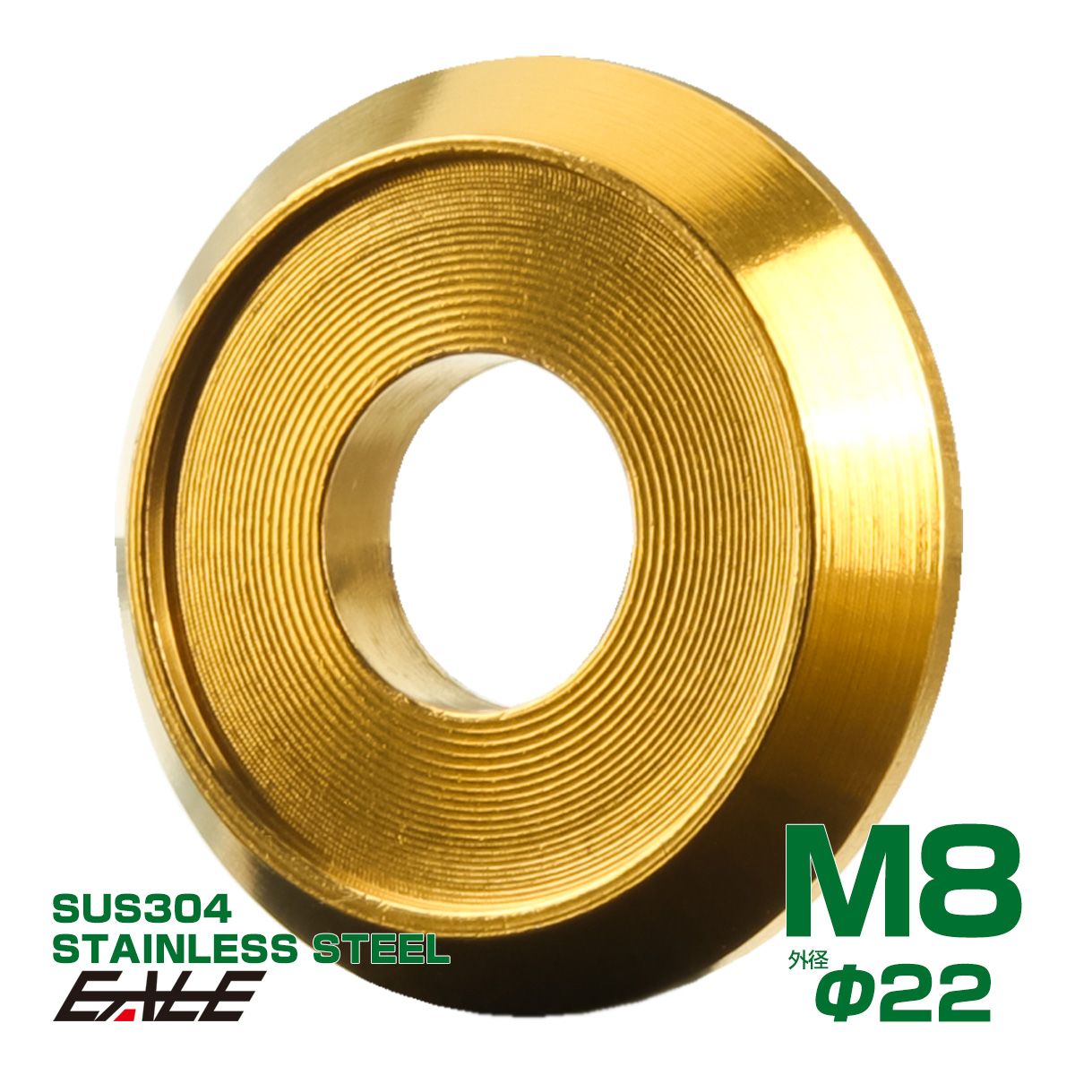 SUS304 M8 デザインワッシャー 外径22mm ボルト座面枠付 フジツボ型 ステンレス製 ゴールド TF0018
