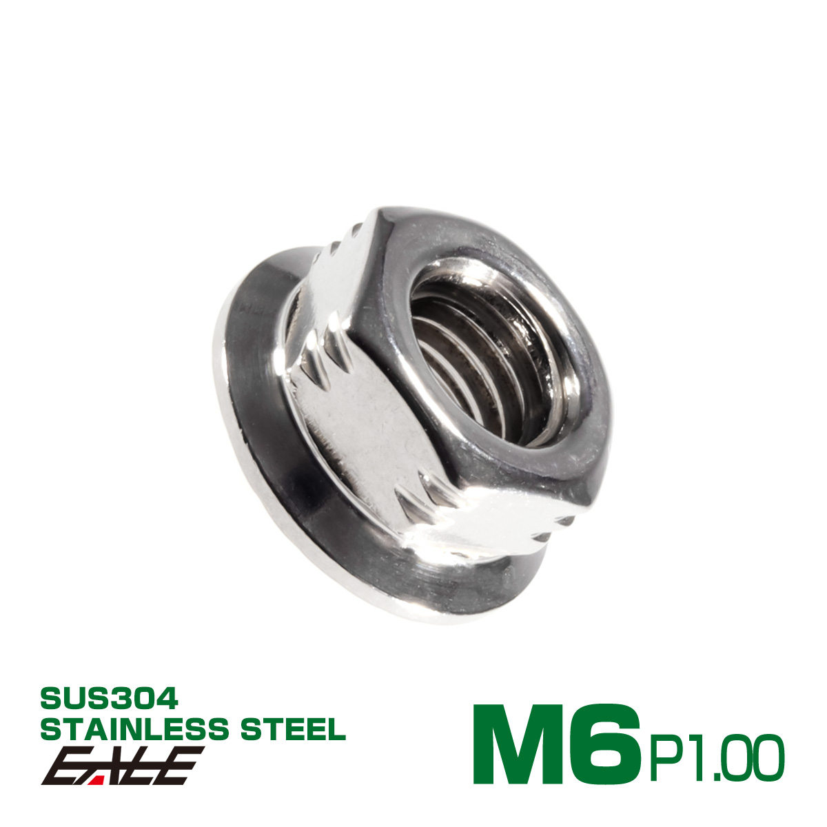 SUS304ステンレス M6 P=1.00 ステップナット 六角ナット フランジ付 シルバー TF0070