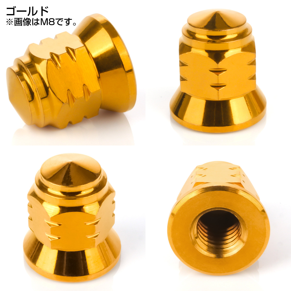 SUS304ステンレスを使用しているので強度はもちろんのこと、サビや熱にも強いので、マフラーを取り付けるナットと交換したり、ボルトのネジ山を見せずにドレスアップしたい場所などに重宝します。