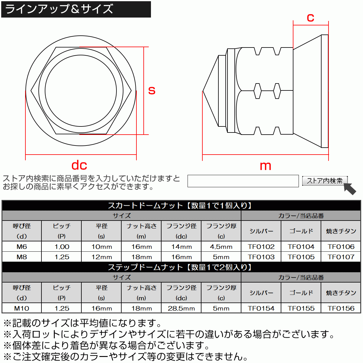 タイのメーカーから直輸入したM6スカートドームナットです。