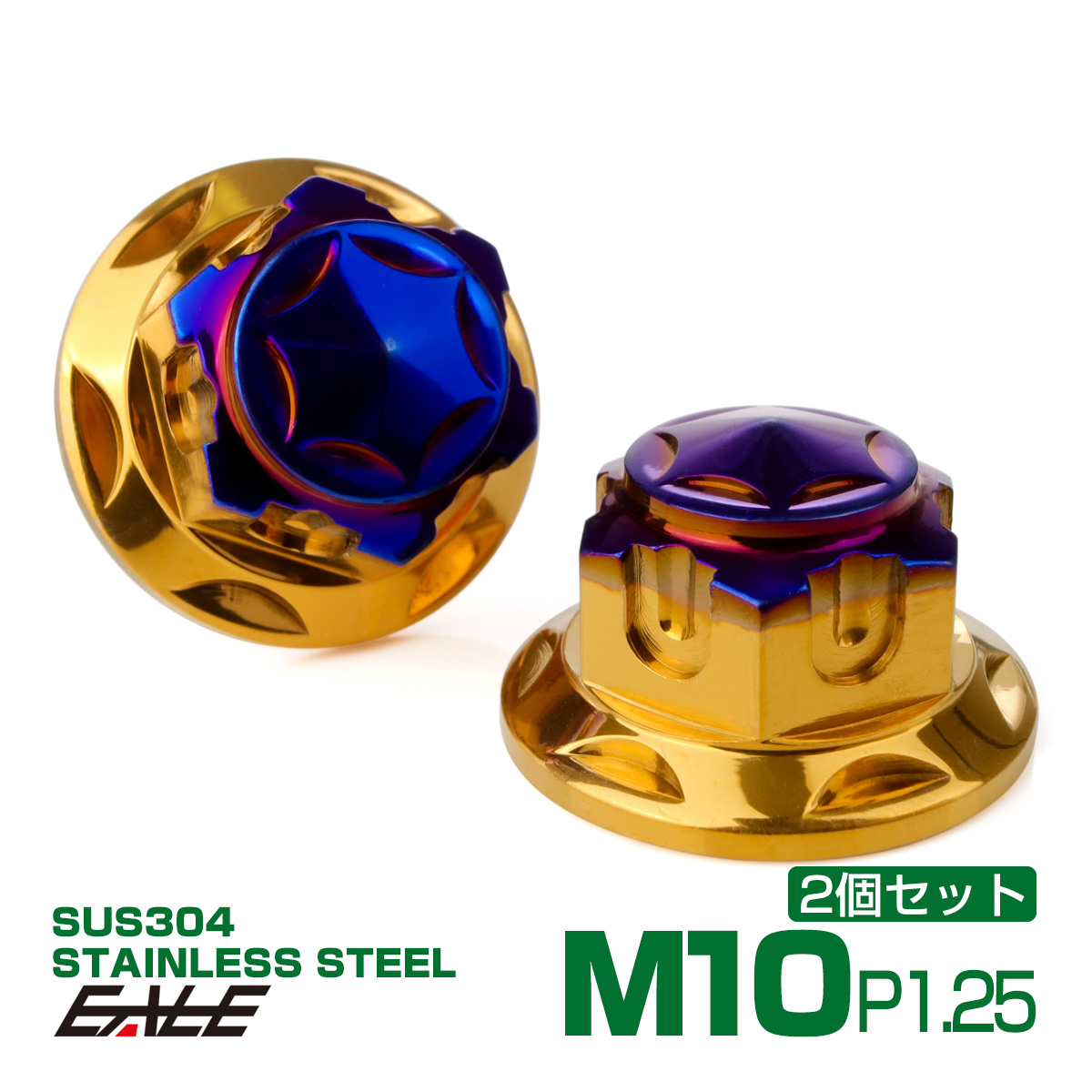 リアショック 取り付けナット M10 P1.25 六角袋ナット フランジナット リアサス 固定ネジ SUS304ステンレス 2個セット ゴールド&ブルー TF0164