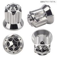 トップ部分の星形の切削加工の周りには、ホール穴加工が施されたデザイン性の高い袋ナットです。