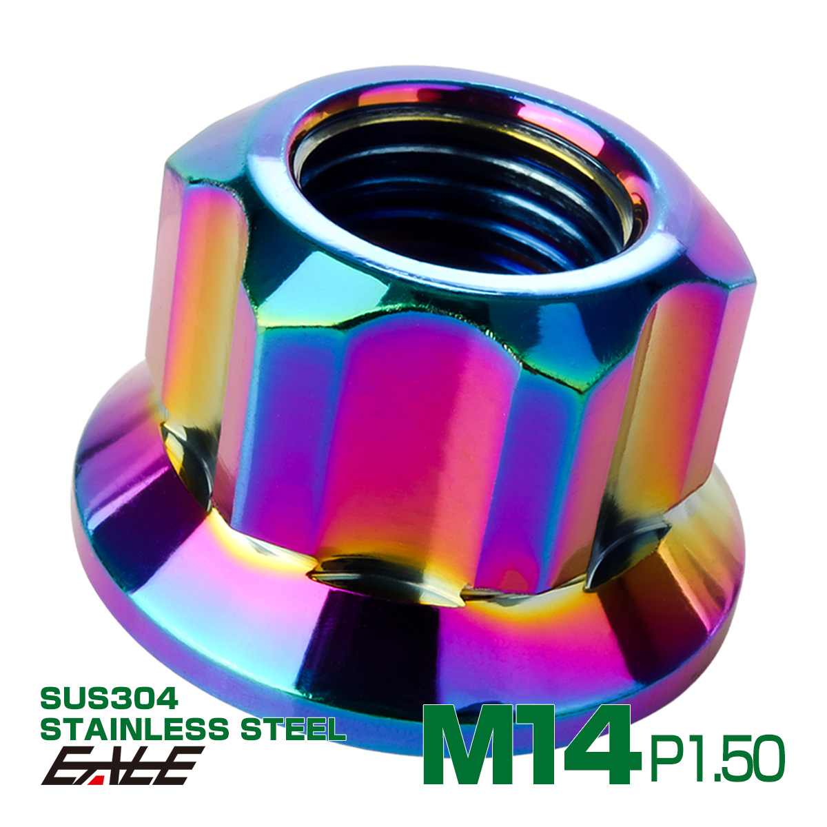 ロング貫通ナット M14 P1.5 フランジ付 六角ナット 切削カスタムヘッド SUS304 ステンレス レインボー 虹色 TF0266