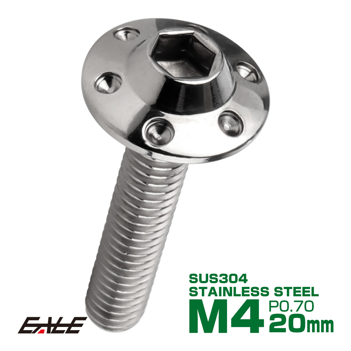 ボタンボルト M4×20mm P0.7 ステップ ホールヘッドボルト フランジ付 六角穴 SUS304 ステンレス シルバー TR0171