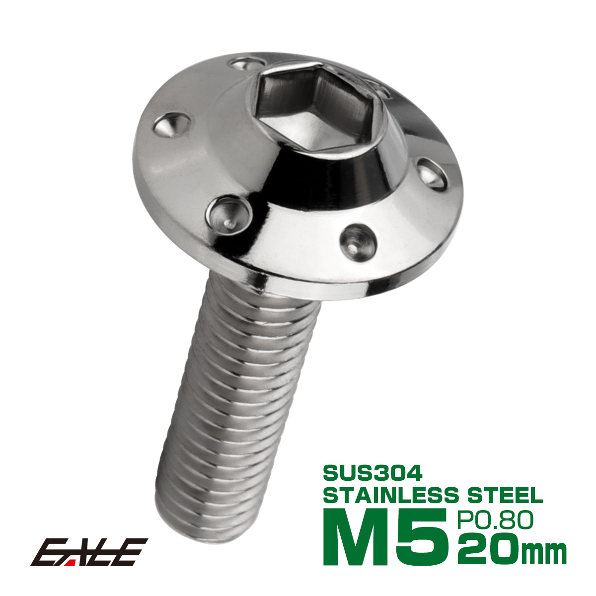 ボタンボルト M5×20mm P0.8 ステップ ホールヘッドボルト フランジ付 六角穴 SUS304 ステンレス シルバー TR0174