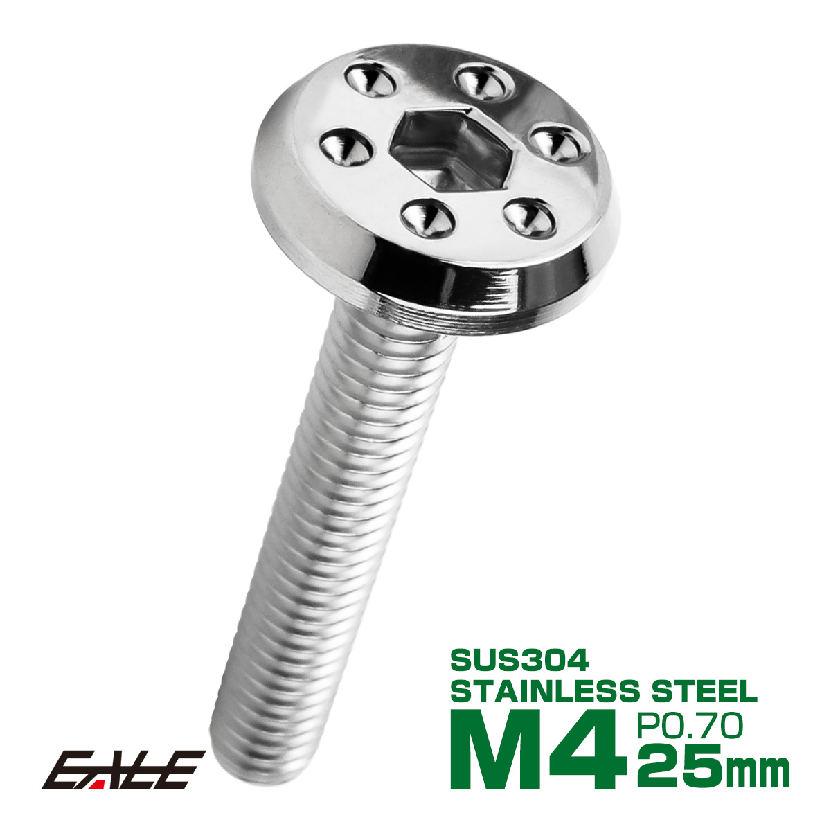 ステンレスボルト M4×25mm P0.7 ホールヘッド フラット 六角穴付 ボタンボルト SUS304 シルバー TR0940