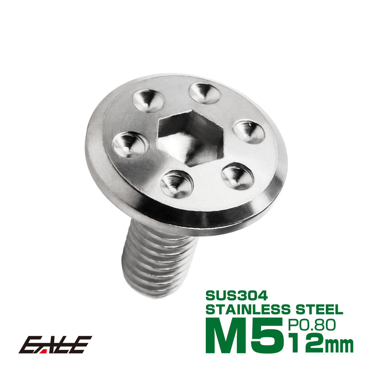 ステンレスボルト M5×12mm P0.8 ホールヘッド フラット 六角穴付 ボタンボルト SUS304 シルバー TR0941