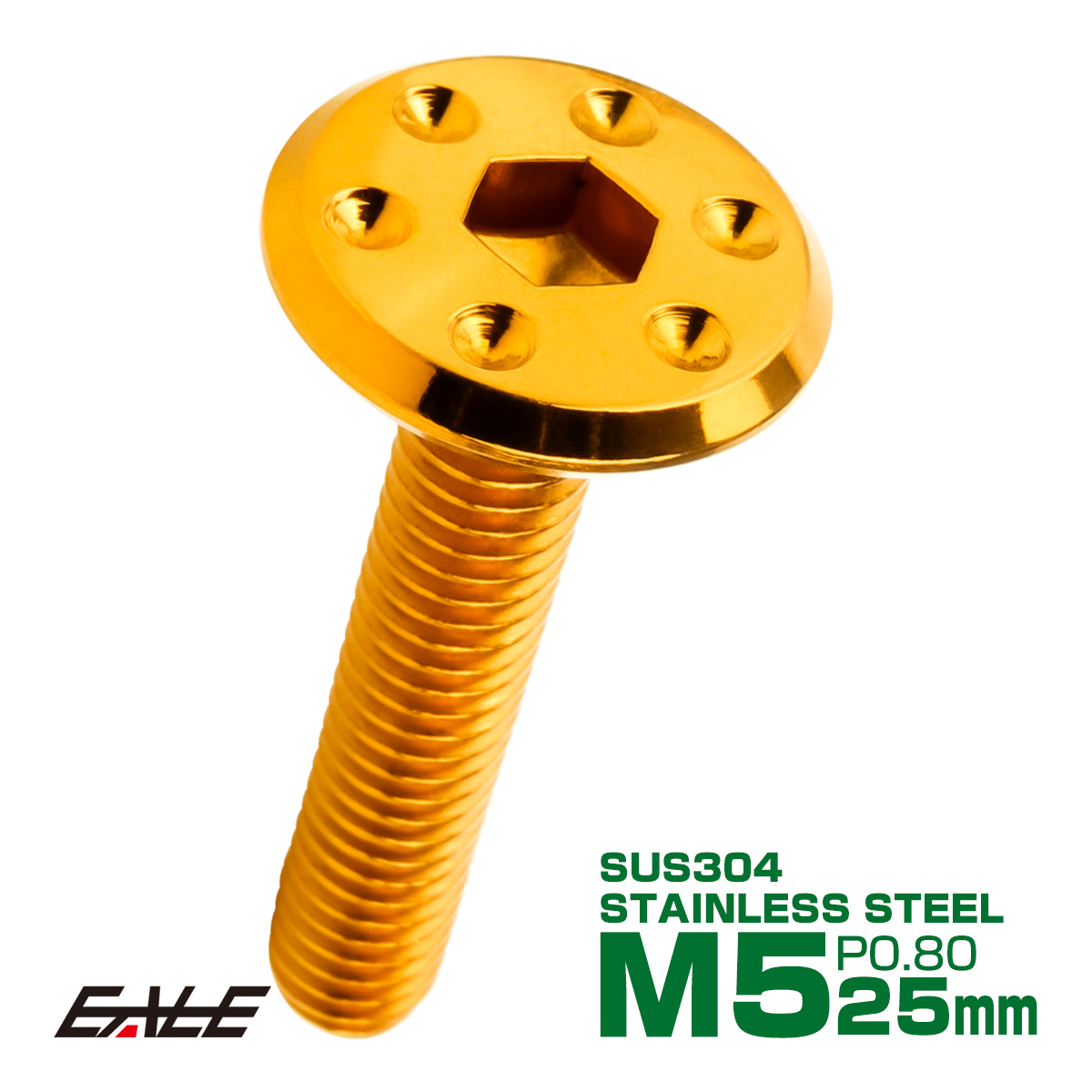 ステンレスボルト M5×25mm P0.8 ホールヘッド フラット 六角穴付 ボタンボルト SUS304 ゴールド TR0960