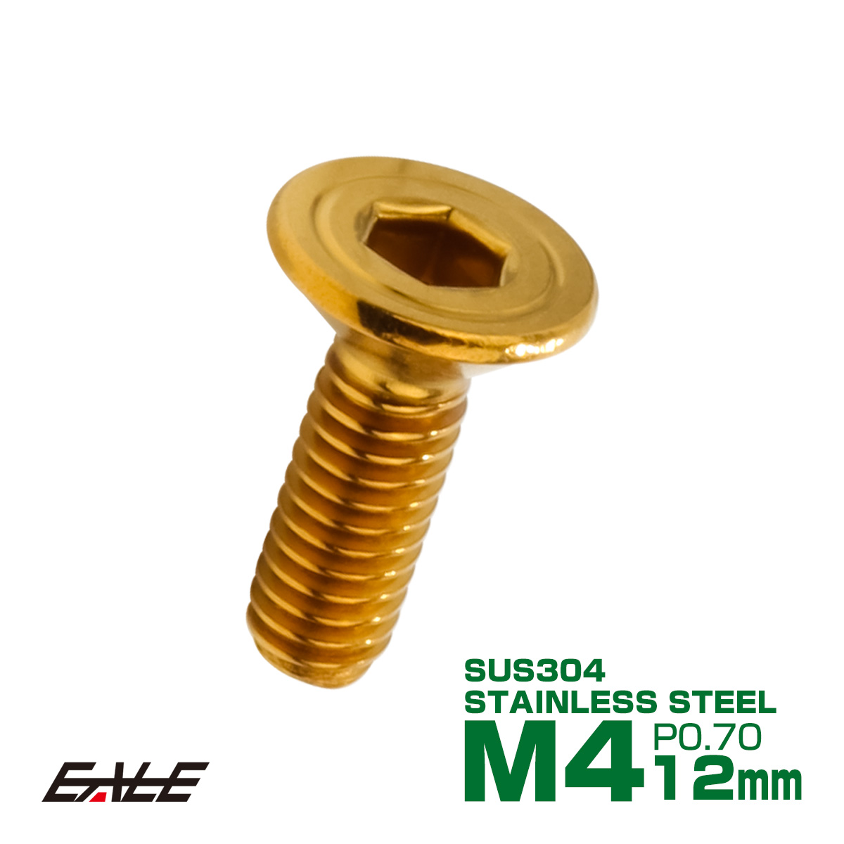 皿ボルト M4×12mm P0.7 シェルヘッド SUS304 ステンレス 六角穴 皿キャップ ゴールド TR0998